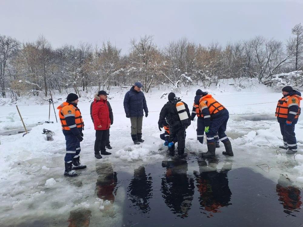 Спасатели МЧС ведут работы по извлечению тел животных из озера Узеть в январе 2026 года