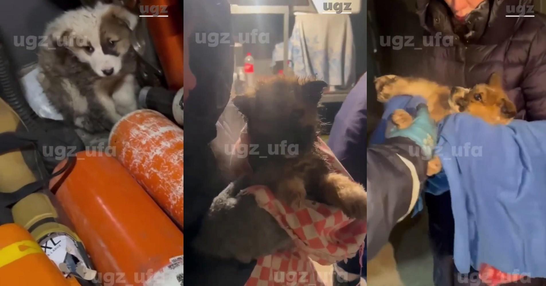 Уфимские спасатели освободили щенков из ледяной ловушки