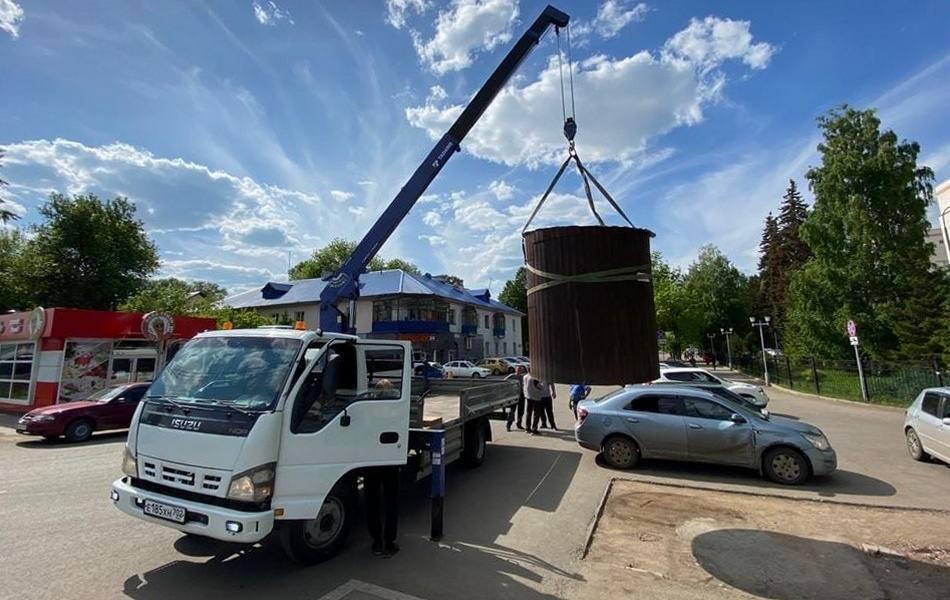 Процесс демонтажа нестационарного торгового объекта в районе Дема летом 2022 года.