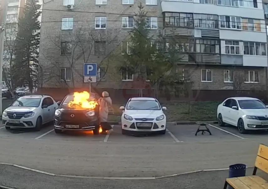 Инцидент попал на видеокамеру: на записи видно, как обвиняемая подливает горючую жидкость в чёрный «Санг-Йонг», после чего машина вспыхивает. Хозяйка автомобиля, выбежав на пожар, вступила с ней в драку.