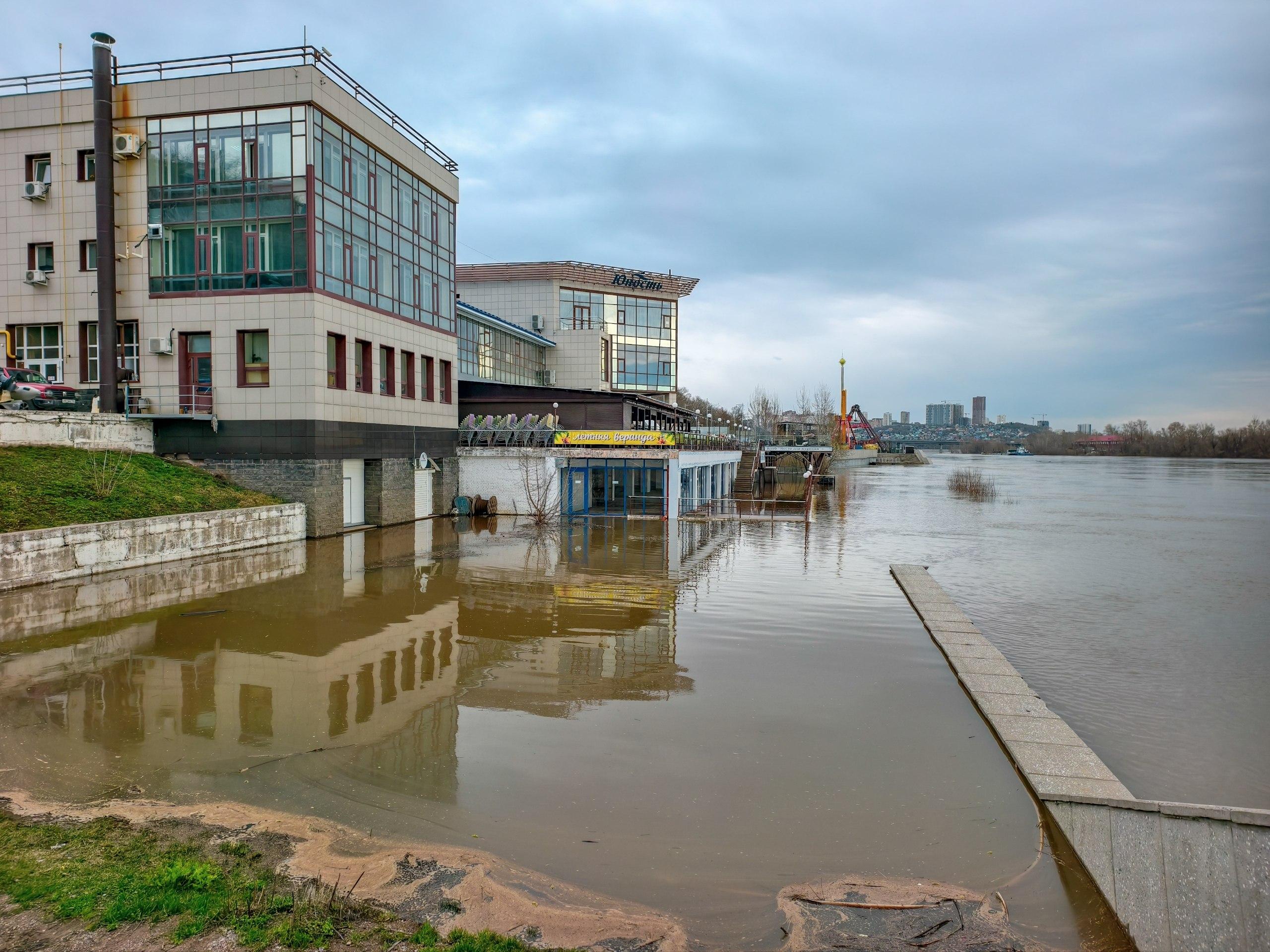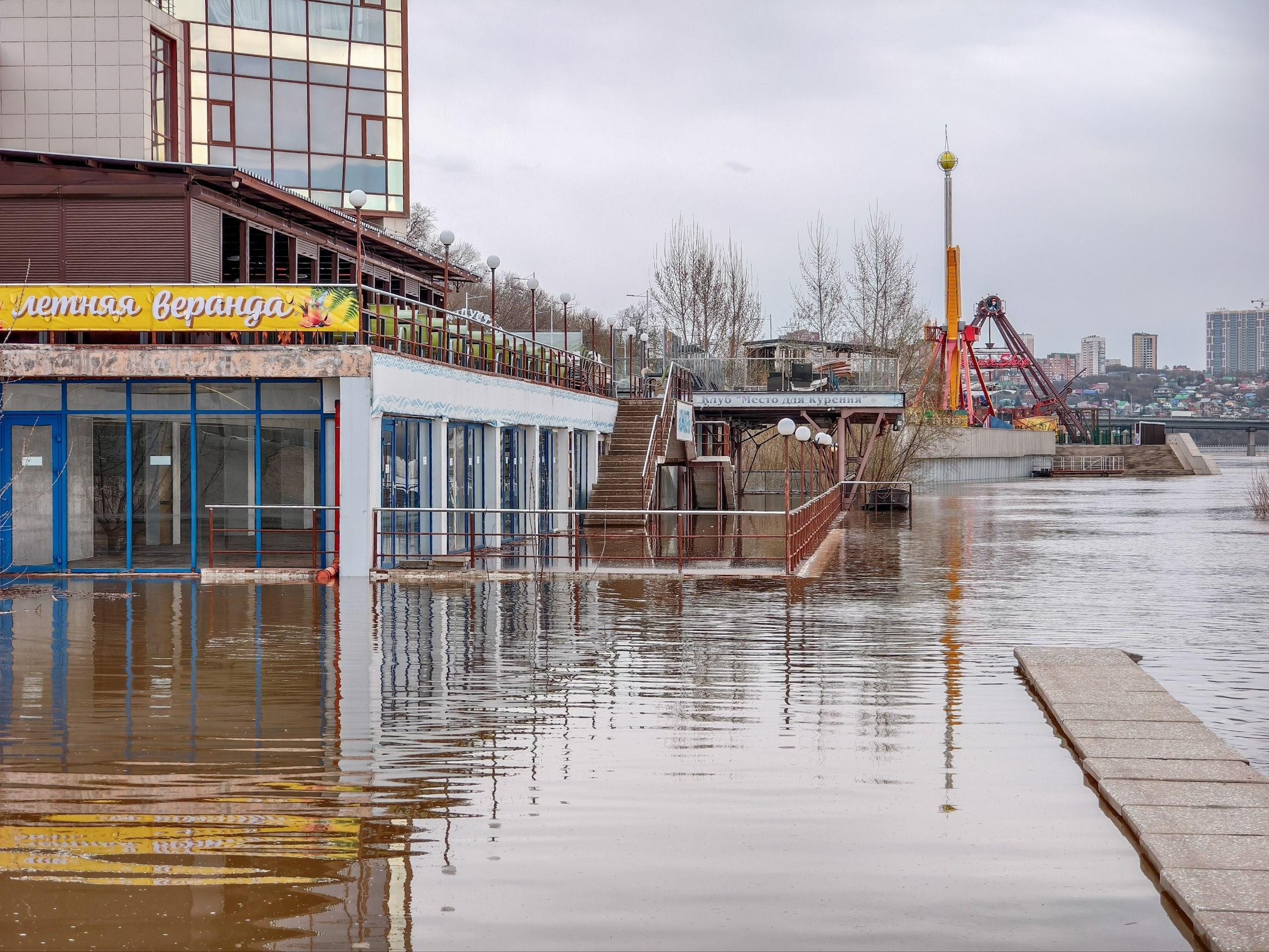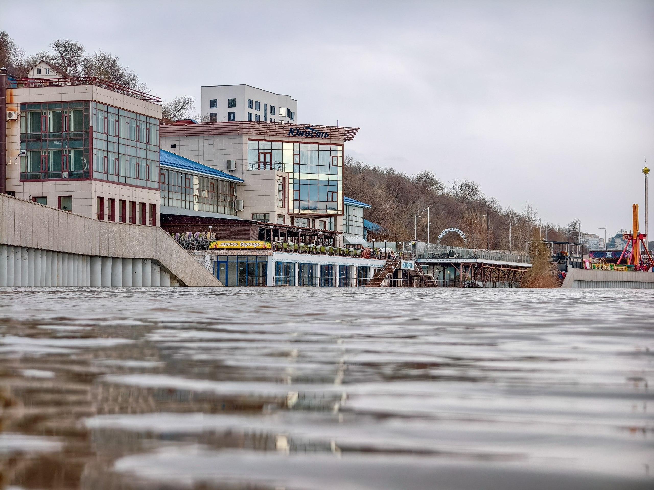 Паводковые воды в Уфе вплотную подступили к зданию комплекса «Юность», расположенному на набережной реки Белая. Уровень реки уже достиг нижнего этажа под летней верандой ресторана, входящего в состав комплекса. Ситуация напоминает март 2025 года, когда помещение также частично оказалось под водой.