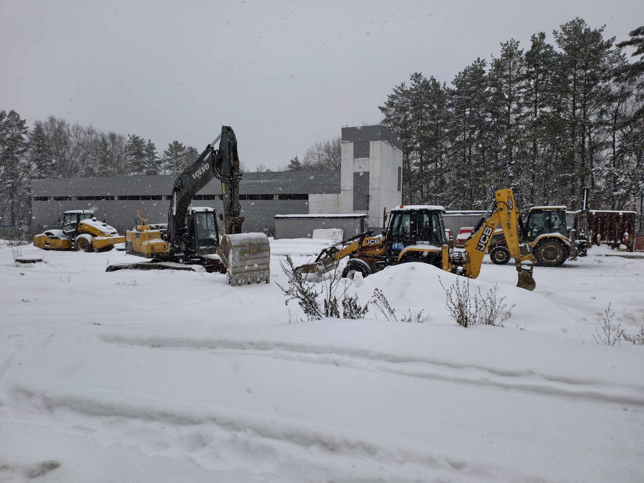 Также на месте появилась новая техника: экскаваторы, бульдозеры и катки, но вся она засыпана свежим снегом. Очевидно, оборудование ожидает наступления весны. Видимых следов активных работ не отмечается.