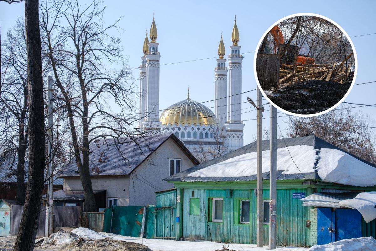 На улице Мингажева в Уфе идут активные работы по сносу домов. Крупные экскаваторы демонтируют здания по адресу Мингажева, 58, откуда открывается вид на недостроенную мечеть «Ар-рахим».