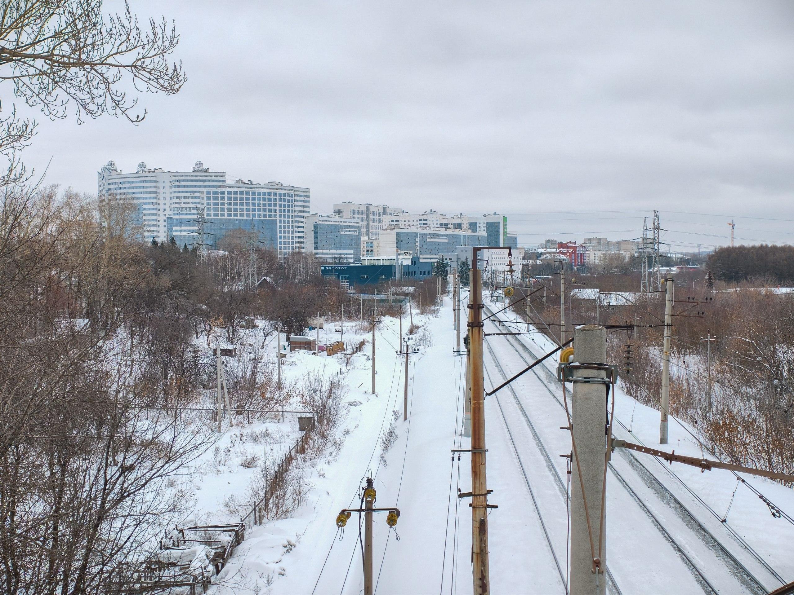 Железная дорога в зимнем убранстве выглядит особенно живописно.