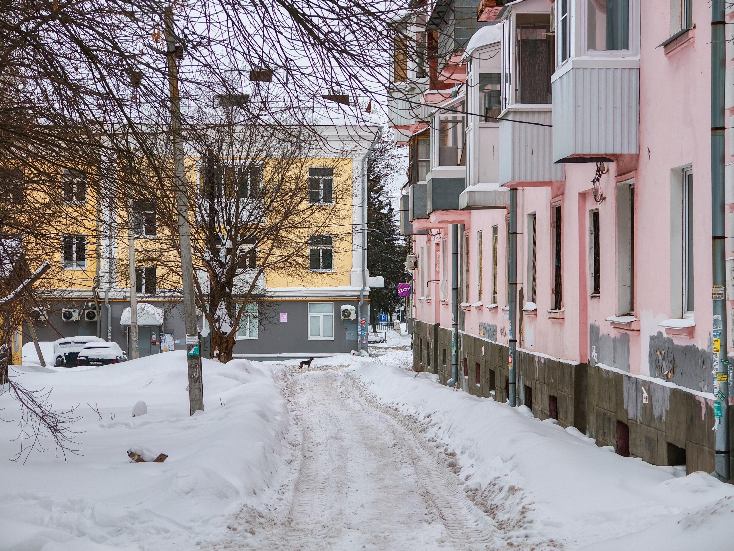 Улица Комарова в снегу.