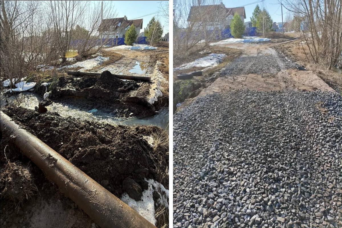 Проезд на улице Мира в Нагаево открыли для транспорта спустя сутки после размытия.