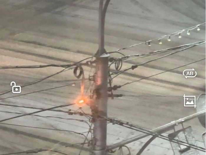 Искрящийся кабель на столбе в Уфе