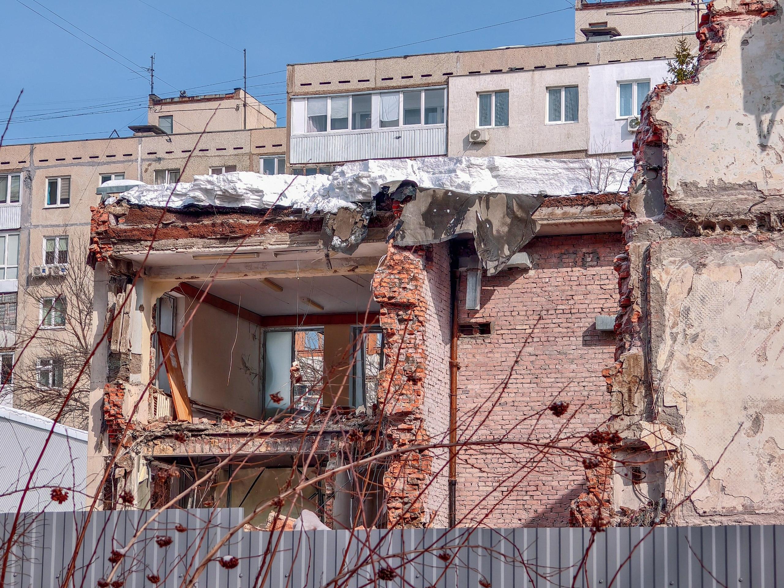 На улице Зорге в Уфе активно продолжается снос бывшего здания Пенсионного фонда. Строение, пустовавшее как минимум с 2022 года, теперь разбирают по частям.
