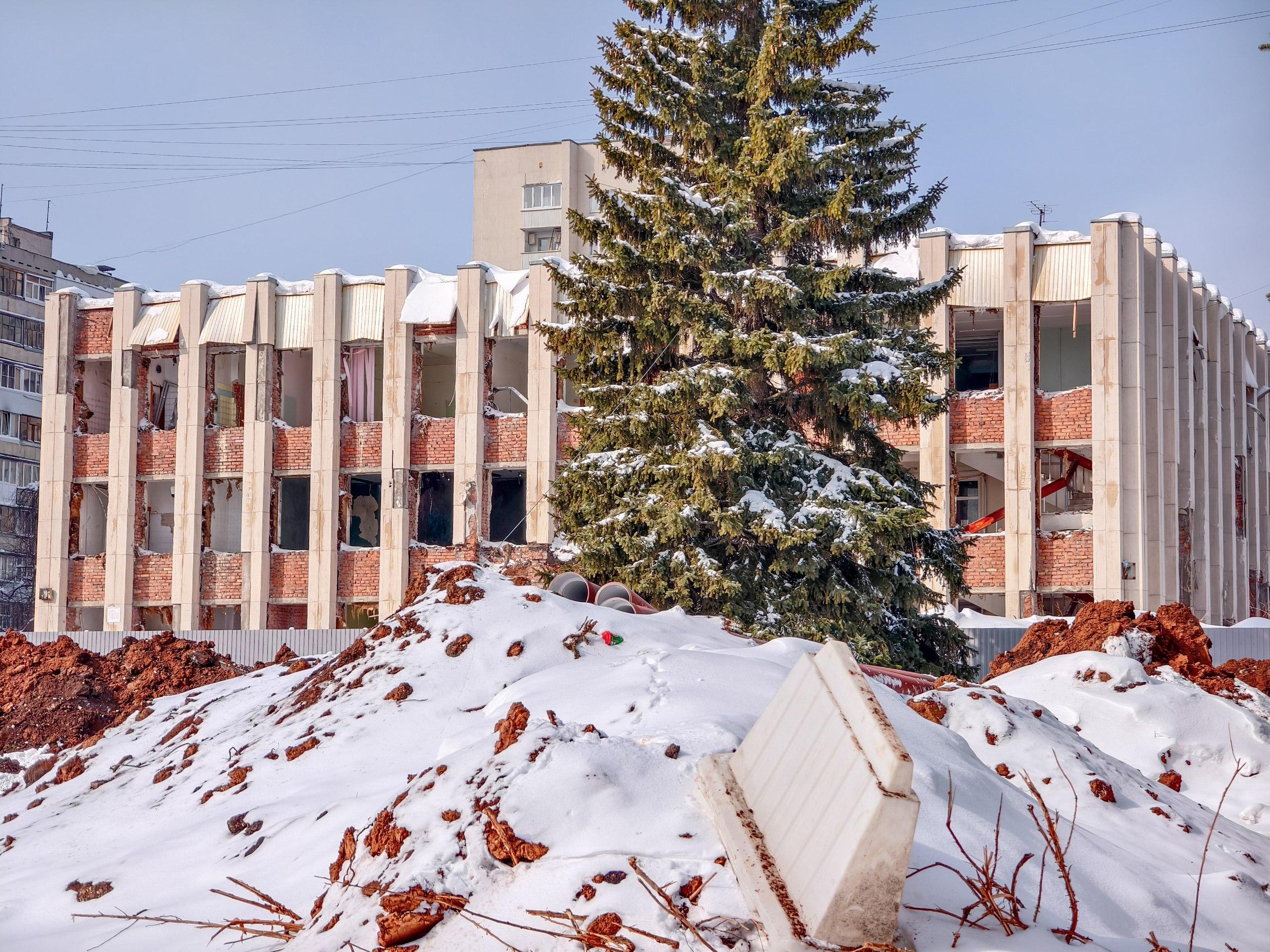 В Уфе сносят бывшее здание Пенсионного фонда у Дворца спорта