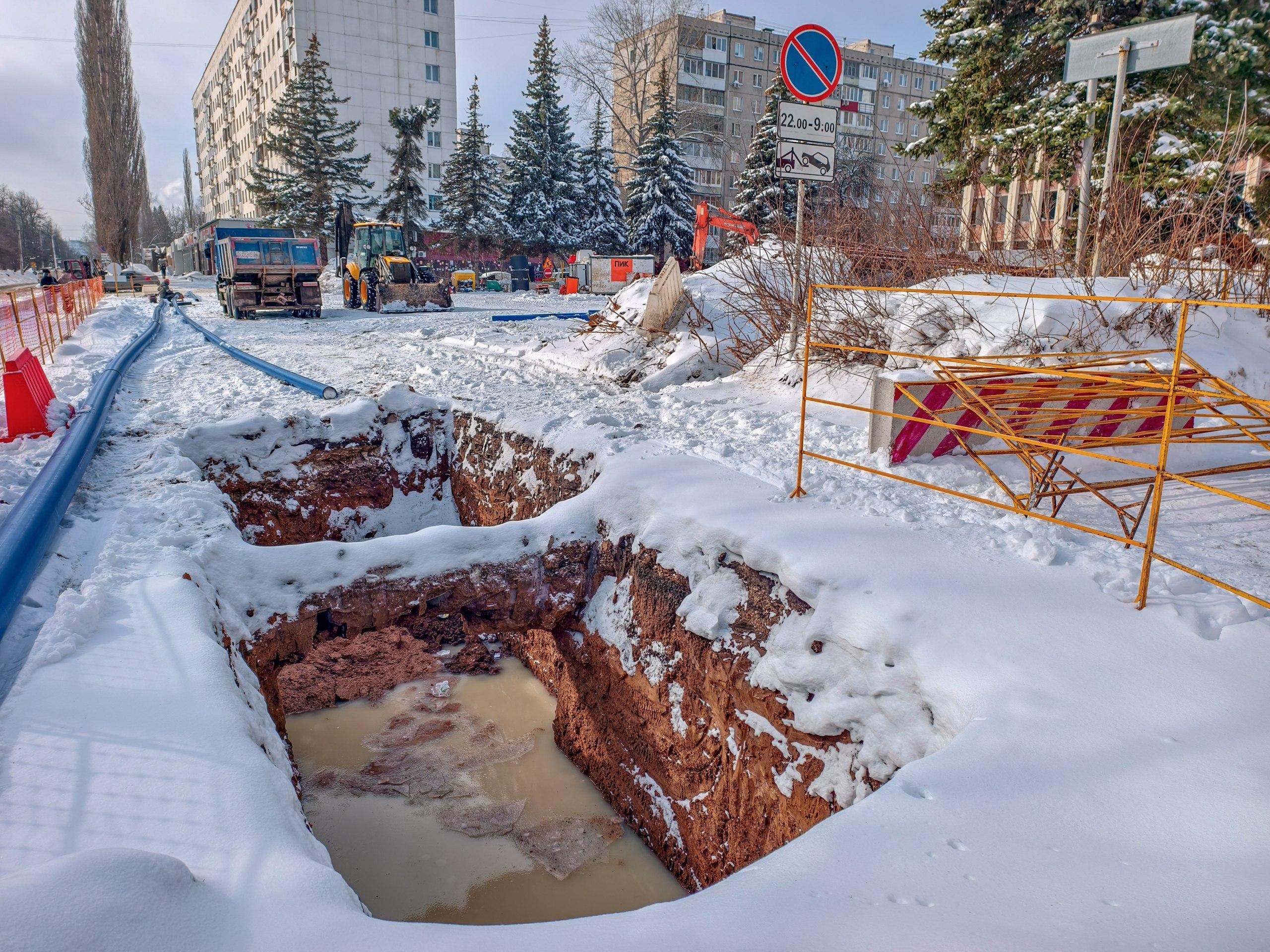 Параллельно со сносом в непосредственной близости ведутся работы по замене коммуникаций — рабочие перебирают трубы.