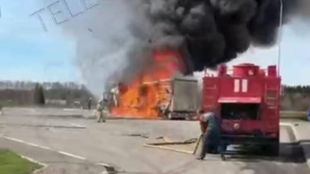 Горящий грузовик на трассе М-5 вблизи Уфы