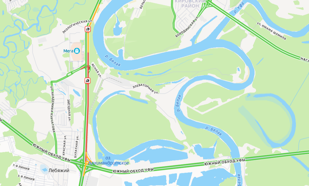 Дорожный затор возник на полосе, следующей в направлении города Уфы. Его протяжённость оценивается почти в пять километров, начиная от развязки с Южным обходом.