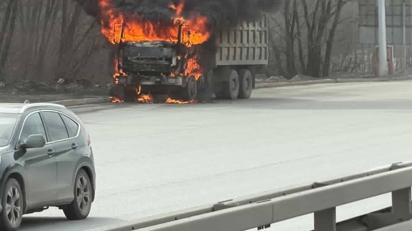 Возгорание грузового МАЗа на проспекте Салавата в Уфе