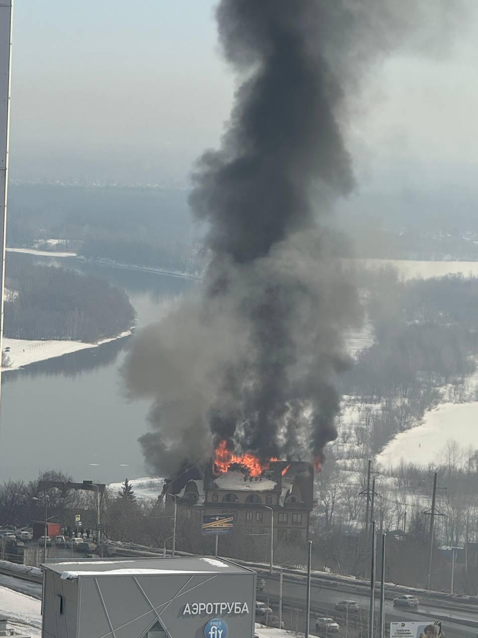 В Уфе загорелся огромный дом напротив «Планеты»