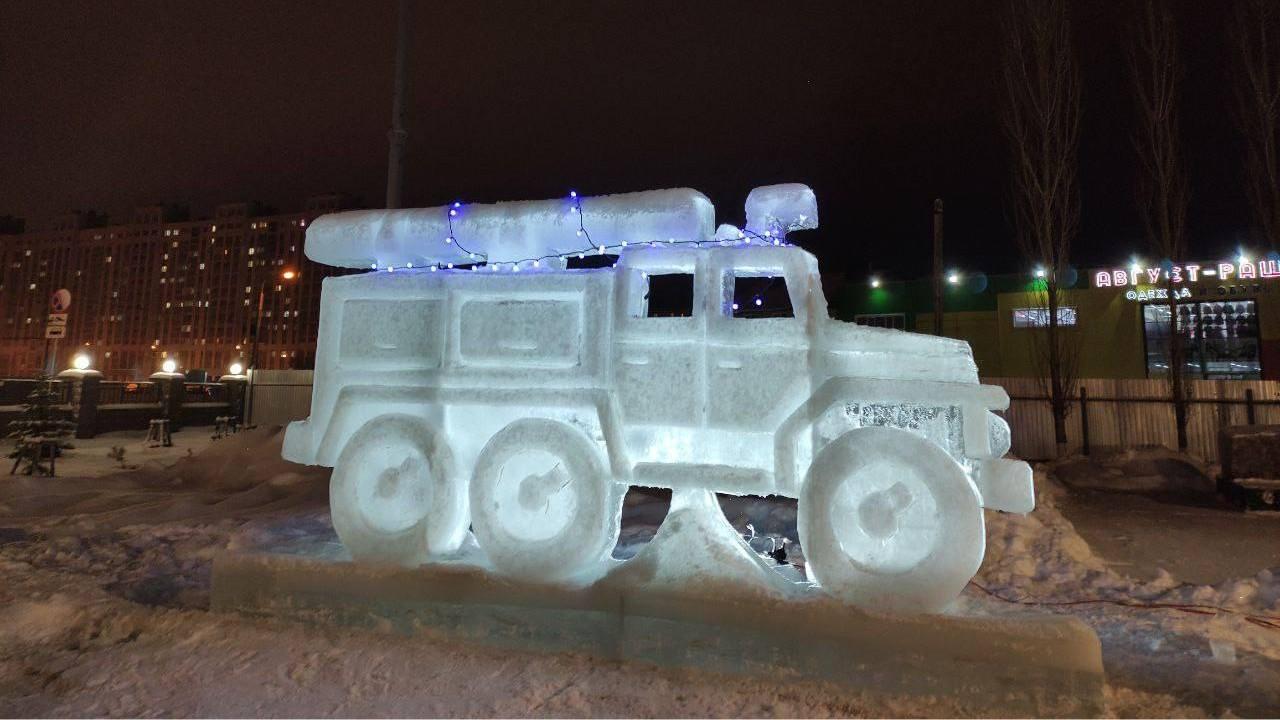Снежные и ледяные фигуры, которые ранее украшали территорию части