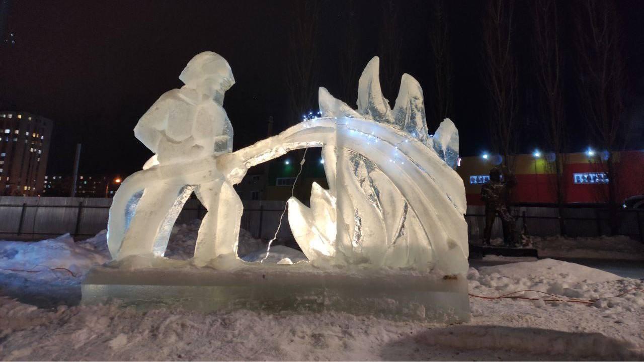 Скульптура из льда, изображающая пламя