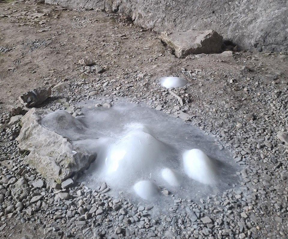 Необычное ледяное образование обнаружили у входа в пещеру с наскальной живописью, что вызвало оживлённые дискуссии о мистических причинах.