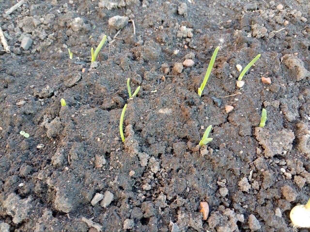 Появление всходов озимого лука