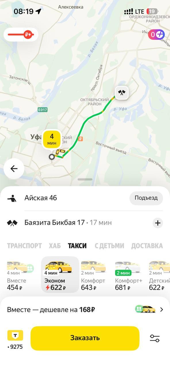 Поездка длительностью 15-17 минут на расстояние 8 километров оценивается в 622 рубля.