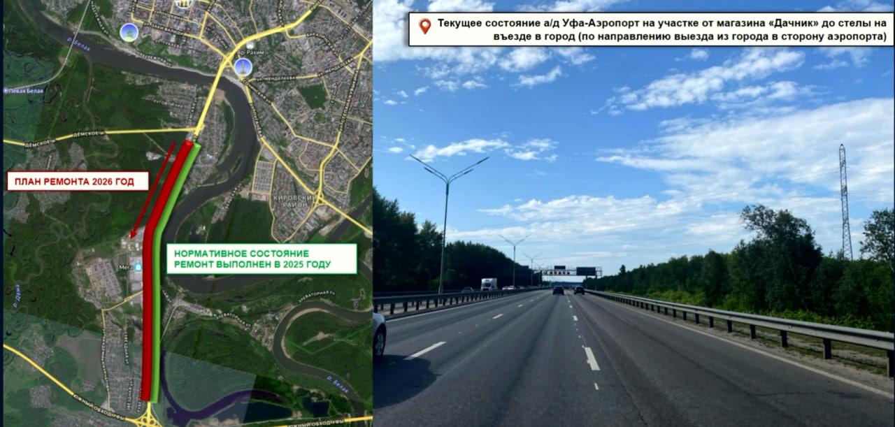 Власти Уфы снова включили магистраль, ведущую к аэропорту, в план летних ремонтных работ. В прошлом году обновили участок от стелы «Уфа» до въезда в город, теперь на очереди обратный отрезок, где пока действует ограничение скорости 40 км/ч.