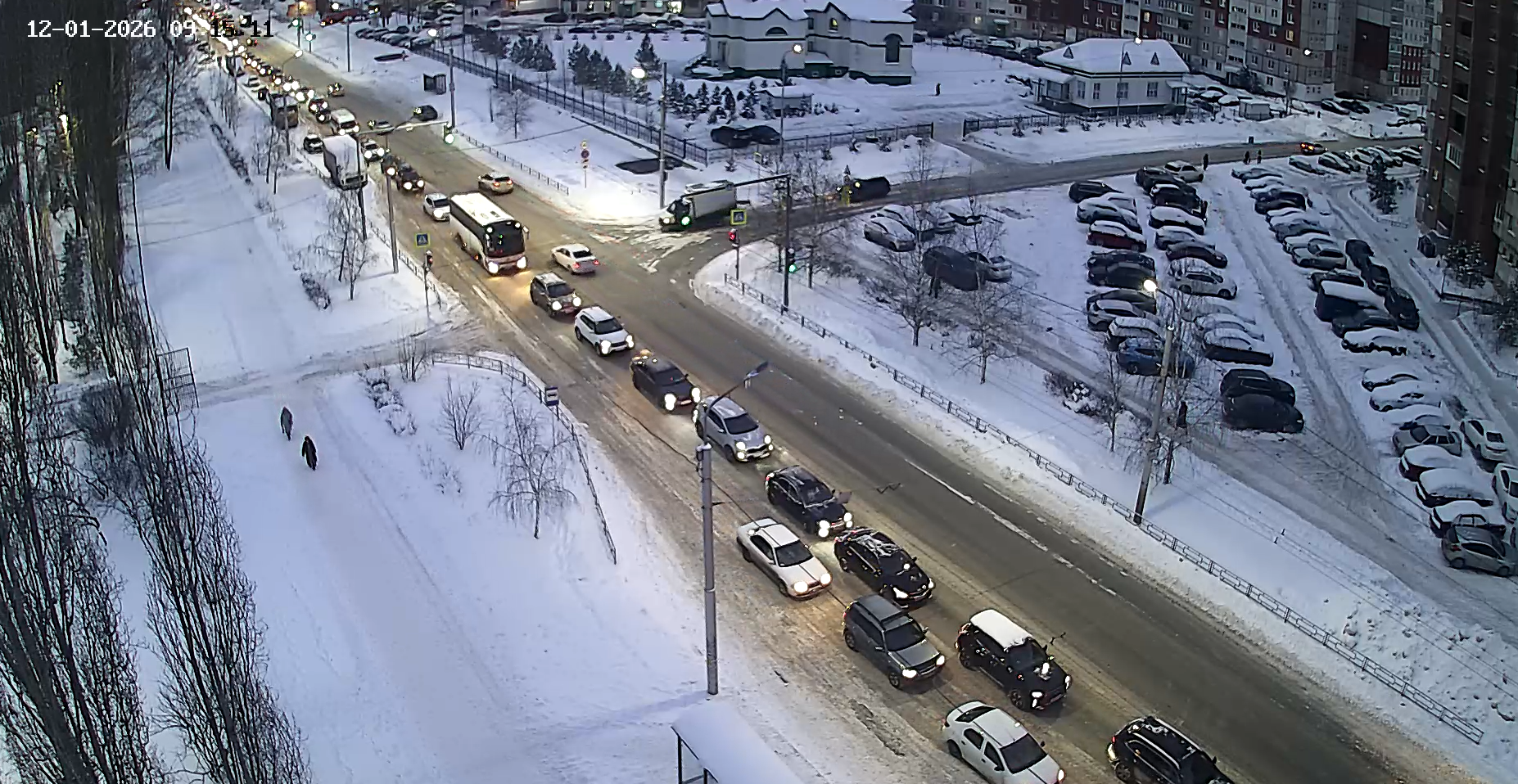 Записи с городских камер видеонаблюдения также подтверждают эту информацию. Ситуацию усугубляет очередь машин на улице Баязита Бикбая, которая пересекает Маршала Жукова.