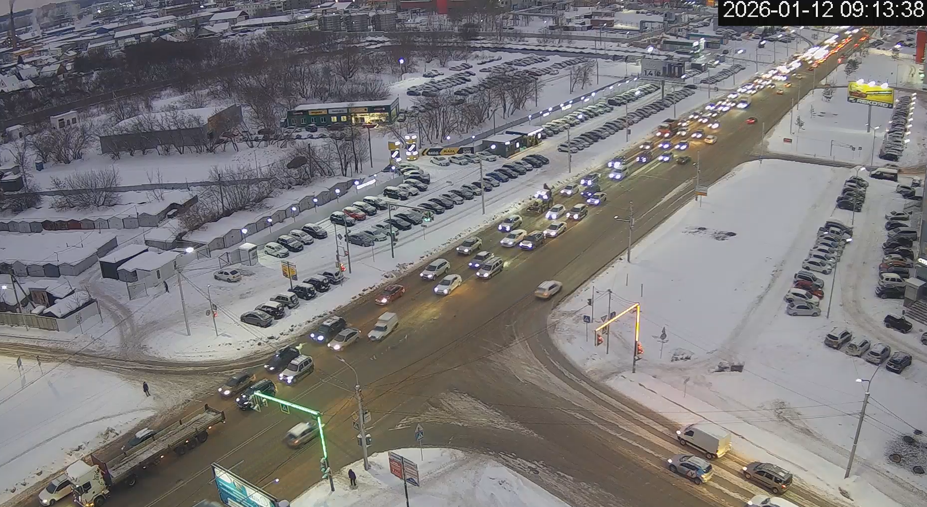 В первый рабочий день нового года в Уфе сформировалась многокилометровая пробка. Жители района Сипайлово столкнулись с трудностями при выезде, поскольку движение на улице Маршала Жукова практически остановилось.